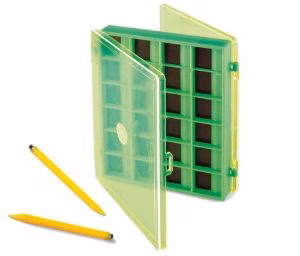 Scatola Lineaeffe magnetica. Scatola per la pesca al colpo, match e feeder doppia con calamita. Questa scatola magnetica per ami ed altra minuteria ha ben 48 scomparti. Doppio pennino con calamita per recuperare gli ami molto piccoli con facilità. Disponibile in due misure:
