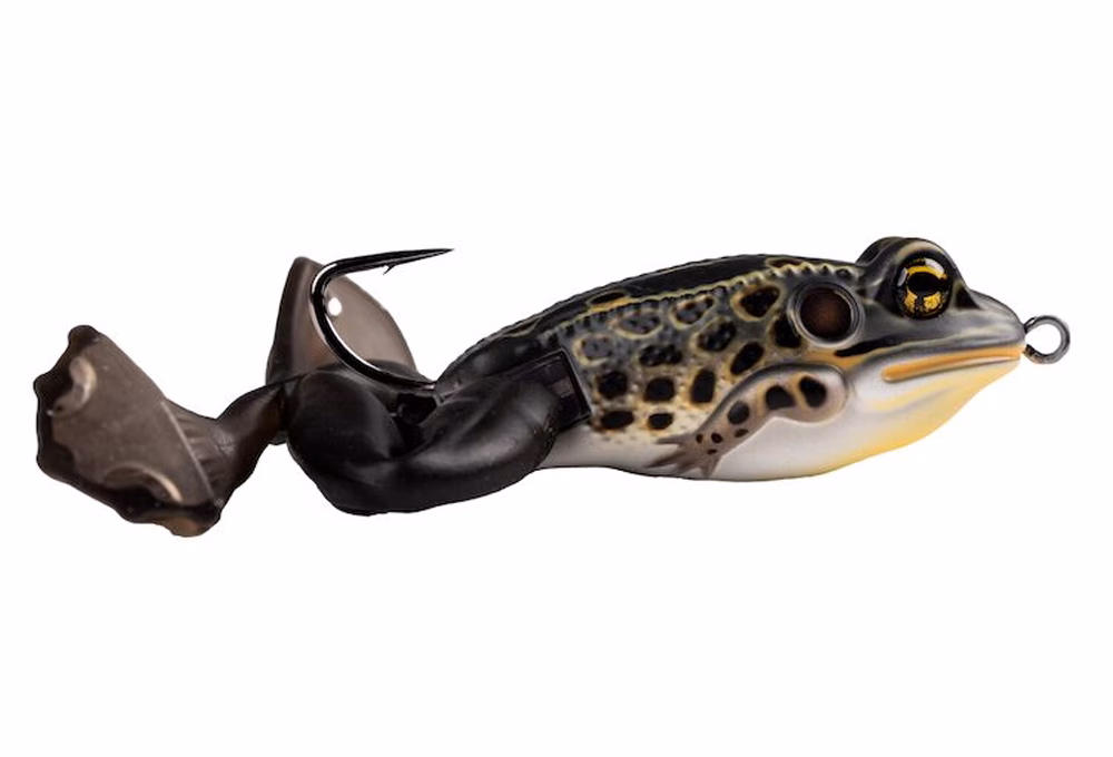 Grenouille Ultime Livetarget. La LIVETARGET Ultimate Frog imite une grenouille vulnérable qui nage à flot, prête à s'échapper. Sa récupération à l'aide du moulinet imite parfaitement le mouvement d'une grenouille qui s'échappe. Conçu pour rester dans l'eau comme une grenouille au repos, avec un angle spécifique des pattes. Lorsqu'il est récupéré, le leurre fait un pas en avant et les pattes se déploient comme une grenouille qui se propulse vers l'avant. Les pattes, fabriquées en TPE robuste, se déplient sur les côtés, tandis que le corps est fabriqué en ABS pour résister aux dents des brochets et des black-bass. Cette grenouille franchit les obstacles avec facilité et ne se coince pas dans la végétation. Vendue avec un jeu de pattes de rechange pour assurer la longévité du leurre. Idéal pour la pêche du bar, du brochet et d'autres prédateurs de surface comme les gros silures.