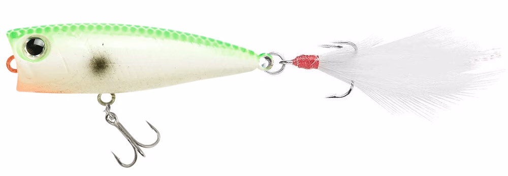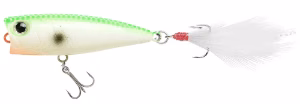 Lucky Craft Bevy Popper 50. Pour un excellent popper, l'essentiel est de produire des effets de mouvement similaires à ceux d'une grenouille ou d'un insecte tombant dans l'eau. Que ce soit dans un lac, un port ou une rivière, la proie qui plonge depuis la rive n'est pas surveillée et constitue donc une victime facile pour les poissons prédateurs. Avec le Bevy Popper, même les situations les plus difficiles peuvent être habilement gérées, grâce à sa flottabilité et à sa capacité de lancer inégalées. Explorez le lieu de pêche avec le Bevy Popper pour attraper les poissons prédateurs, en vous méfiant de la pression de pêche ou de la clarté de l'eau. Vous pouvez également essayer de laisser le Lucky Craft Bevy Popper complètement immobile, en le faisant bouger uniquement par les mouvements de surface de l'eau. Il est préférable d'utiliser le Lucky Craft Bevy Popper dans un environnement bruyant, avec un vent ou un courant fort. Idéal pour le black bass, le bass, la perche, la perche, le gros chevesne. Fabriqué au Japon