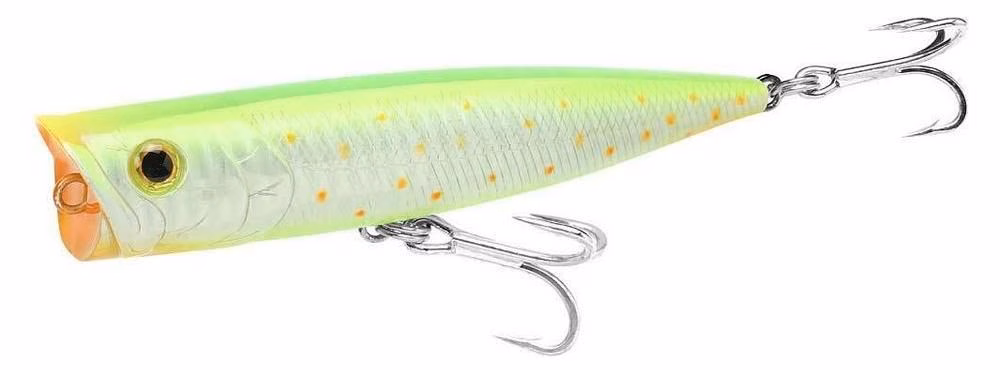 Le popper Lucky Craft G-Splash 120 HD est un popper d'eau salée aux caractéristiques uniques : il se comporte comme un véritable « pain de savon ». Coulant, en cas de chute, il reste à la surface s'il est récupéré et « secoué ». L'équipe Lucky Craft a développé un produit très particulier qui, avec seulement 12 cm de longueur et un corps HD très lourd, permet de le projeter à des distances exceptionnelles, là où d'autres poppers marins ne pourront jamais atteindre. Impeccablement armé, ce topwater, qui laisse une traînée de bulles et d'écume à son passage, peut affronter et gagner des poissons comme le poisson bleu mais aussi d'énormes barracudas, thons et poissons tropicaux. Contrairement aux poppers flottants courants, son poids et sa position lui permettent de maintenir les vagues et la trajectoire de manière optimale. Conçu au Japon, fabriqué au Japon.