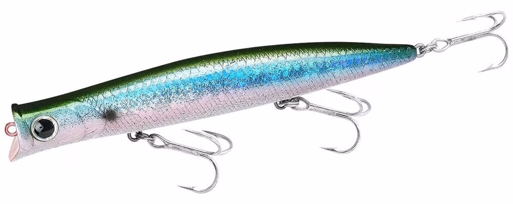 Lucky Craft Surface Wander, l'appât à dard absolument parfait pour la pêche au bar. Equilibré à l'intérieur du corps pour voler loin, avoir une nage régulière avec très peu de rolling et une conduite très naturelle lors de la récupération, mais capable de reprendre son assiette immédiatement après un "jerking". Il convient aux eaux peu profondes (comme les embouchures de rivières), aux rochers affleurants ou aux poissons qui se nourrissent à la surface en pleine mer. Grâce à sa nage atypique et indolente, il peut donner des résultats supérieurs à ceux de n'importe quel autre vairon d'eau de mer dans des situations extrêmement difficiles. Un appât recommandé pour le bar, mais aussi très efficace sur les poissons bleus et les barracudas. Fabriqué au Japon.