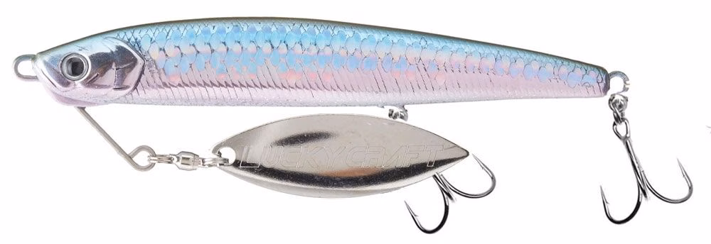 Lucky Craft Wander Blade 90SS. Minnow hybride sans bavette, conçu pour être vu, ressenti et entendu, le Lucky Craft Wander Blade 90SS fait appel à plusieurs sens pour déclencher les attaques des black bass et d'autres poissons prédateurs qui n'ont tout simplement jamais rien vu de tel. Doté d'un corps compact, fabriqué en ABS de haute qualité, et facile à lancer, le Wander Blade 90SS peut être ramené de manière constante à des vitesses rapides ou lentes, jigé, ou utilisé avec une récupération twitch-and-pause (tirer et marquer une pause) ou lift-and-drop (lever et laisser descendre vers le fond). Capable de pêcher dans toute la colonne d'eau grâce à sa construction coulante, le Wander Blade 90SS présente une action de rolling serrée à chaque tour de manivelle et est équipé d'une palette métallique qui ajoute du flash, du son et une vibration pulsée lors de la récupération et de la chute. Le profil mince du Wander Blade 90SS est orné de détails de corps réalistes d'un véritable poisson fourrage et d'une finition de peinture multicouche durable. Excellent à utiliser avec ou sans sonar à balayage frontal (sonar live), le Wander Blade 90SS est efficace pour cibler le bass ou une vaste gamme d'autres espèces d'eau douce et salée (perche, sandre, brochet, aspe, bar). Équipé d'hameçons triples extrêmement piquants, le Lucky Craft Wander Blade 90SS est recommandé pour être utilisé sur une canne à action rapide (fast-action) moyenne ou moyenne-légère associée à un leader de 8 à 12 livres. Fabriqué au Japon.