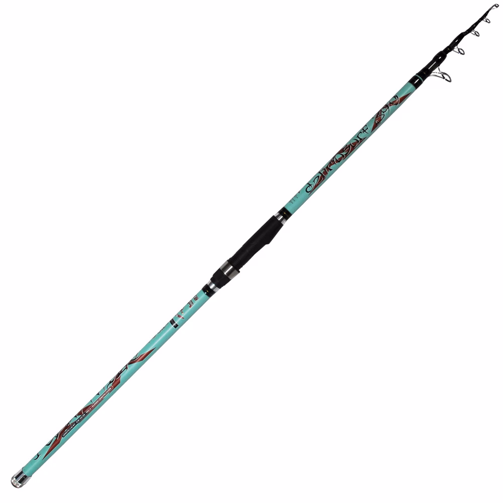 Canne à lancer Milo Deliriusurf. Canne à pêche télescopique Milo surf casting en quatre brins en carbone très haut module "High Resistance", montée avec des anneaux SIC II très fluides à double pont. La poignée de ces cannes à pêche Milo surf casting est traitée avec un revêtement antidérapant et présente une longueur optimale pour les lancers à longue distance. Equipées d'un porte-moulinet avec un solide blocage à vis et d'un scion très sensible mais puissant grâce à la technologie 'Powerful Action', ces cannes à pêche pour le surf casting Milo ont une longueur optimale pour les lancers à longue distance.
