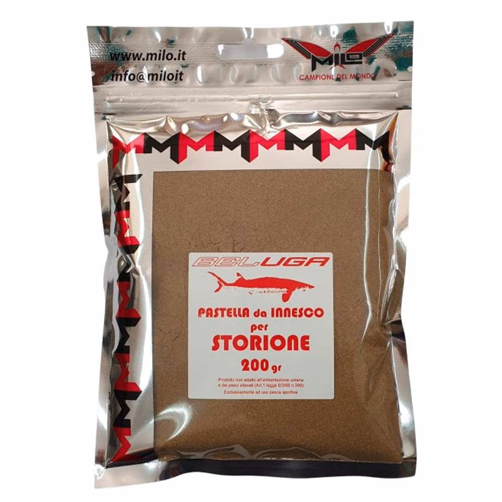 Milo Paste Beluga Sturgeon. This sturgeon-specific paste, literally deadly in fishing, is made up of a particular floury compound which, once properly humidified, turns into a batter that is easy to apply to the hook. Thanks to the presence of amino acids and betaine, once in the water it will release all the attracting particles to attract sturgeons from several meters away. Double wetting is recommended.