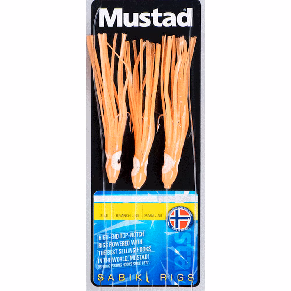 Calamar Mustad Sabiki. Les montages Sabiki Squid sont des poulpes de pêche en mer pré-gréés avec 3 hameçons Mustad. Ils comportent des bas de ligne attachés à la main avec des hameçons Mustad spécifiques à la mer de haute qualité et une ligne de pêche Mustad solide et fiable. Chaque montage est développé avec la bonne taille d'hameçon et la bonne combinaison de ligne pour offrir une résistance et une durabilité maximales. Idéal pour de nombreuses espèces de poissons marins. Pour la pêche à la traîne ou en mer verticale.