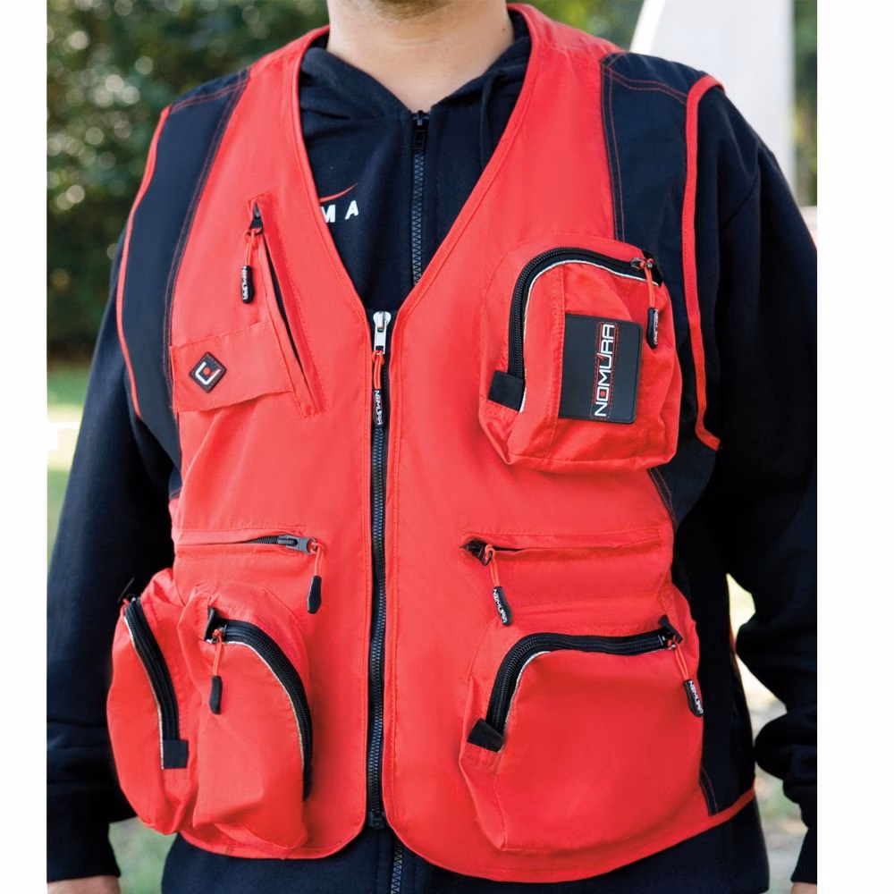 Gilet de pêche Nomura. Gilet de pêche en tissu technique ultra-léger. Le tissu technique ultra-léger et les 9 poches zippées placées à des endroits stratégiques font de ce nouveau gilet de pêche un allié précieux pour avoir toujours tout ce qu'il faut sur soi tout en gardant les mains libres.