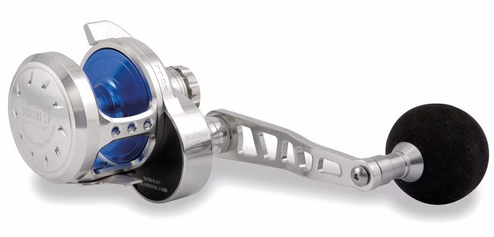 Moulinet Nomura Senshi Slow Pitch. Moulinet baitcasting pour le slow jigging et la pêche avec de gros softbaits tels que les gros Black Minnows ou des leurres en plastique de type calmar pour les techniques verticales. Compact, léger, mais en même temps fiable et résistant au sel avec une puissance de récupération infinie. Le Nomura Senshi SP est principalement conçu pour la technique du slow pitching et, dans la taille 40, également pour la pêche à la traîne. Drague micrométrique à levier, douce, précise et à relâchement progressif de la bobine avec une puissance de 23 kg. Poignée à gauche.