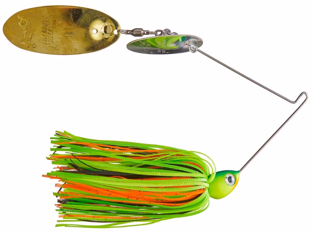 Le Panther Martin Sonic Thumper spinnerbait est irrésistible pour les poissons monstrueux. Le secret du SonicThumper™ réside dans le fait que nos palettes Panther Martin exclusives et originales créent un son spécial et un bruit sourd qui attirent les poissons. La rotation des palettes Panther Martin est activée par de petites billes en verre transparent situées derrière la première lame et par un émerillon situé devant la deuxième lame, plus grande. La plus grande pale a deux trous à l'avant - un pour attacher la pale à l'émerillon et un autre à l'arrière, là où l'arbre irait normalement, ce qui crée un effet de bulles qui ajoute encore à l'action sonore de ce leurre. Ces combinaisons de pales sont encore améliorées par des habillages en silicone de couleurs vibrantes noués à la main derrière la tête de vairon traditionnelle sur la tige en fil métallique. La combinaison des lames Panther Martin® uniques qui scintillent dans l'eau et le bruit sonique qui en résulte rendent ces leurres irrésistibles pour les gros poissons. Utilisation suggérée : sandre, perche, brochet, black bass.