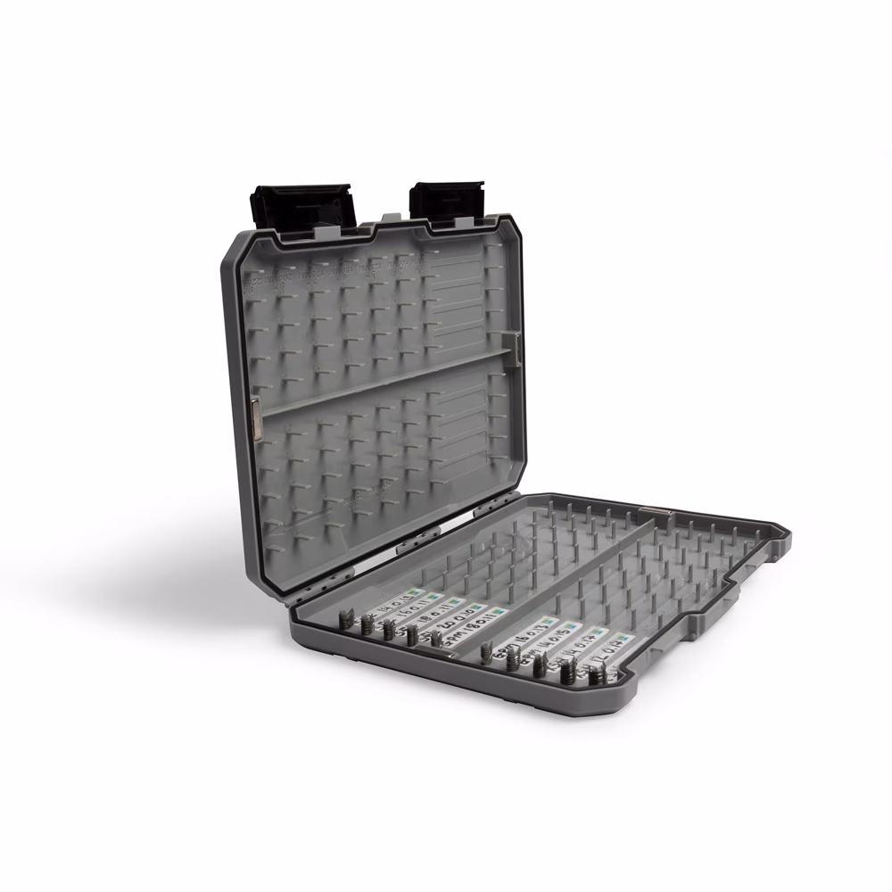 La boîte à crochet longue PRESTON INNOVATIONS Absolute All-Round est idéale pour stocker de grandes quantités de crochets longs de 3" (75 mm) à 9" (225 mm). La capacité est énorme avec la boîte longue à la cheville pouvant contenir jusqu'à 20 mailles. Il y a 20 positions disponibles pour les crochets longs plus longs jusqu'à 9", et 40 positions si les crochets longs mesurent 3" ou 4" de long, ce qui signifie que jusqu'à 800 crochets longs sont en stock. 3 ou 4". L'emballage vous aide à remplir l'eau de la bouteille. Il s'agit d'une sélection de deux clips et d'accessoires supplémentaires sur les bords. La boîte est fabriquée en plastique ABS ultra résistant et possède des broches fixes qui sont bien positionnées et ne peuvent pas tomber. Ce type de crochet est clairement identifiable sur les quatre étiquettes.