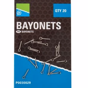Raccords à vis en acier inoxydable à baïonnettes Preston pour appâts. Les baïonnettes Preston sont parfaites pour les bouillettes et band'ums d'une taille de 6 à 10 mm, il suffit de pousser ou de visser la baïonnette sur l'accessoire et elle sera fermement fixée en place.