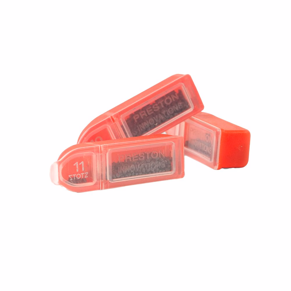 Preston Innovations Stotz. La laisse STOTZ Preston est une laisse hybride, avec une forme particulière. Sa large rainure permet une application rapide sur le monofilament. Même en déplaçant le longe sur la ligne, les STOTZ Preston restent toujours bien ancrés sans endommager la ligne. Preston Innovations Stotz est idéal pour préparer des lignes douces.