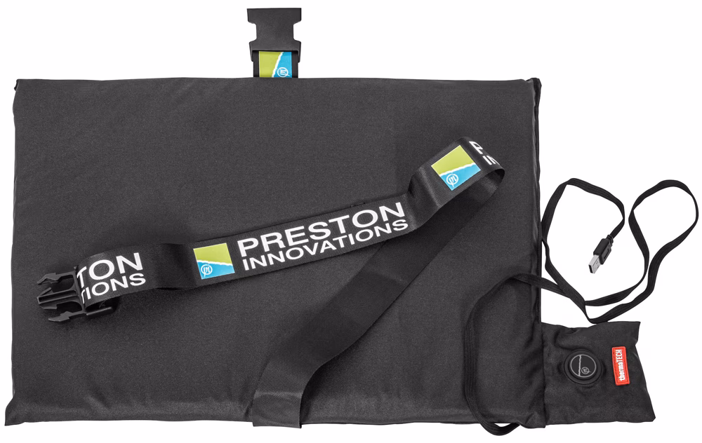 Oreiller chauffant Preston Innovations. Un coussin confortable rembourré d'éléments chauffants Thermatech, offrant de la chaleur pour les journées les plus froides. Équipé d'une sangle sécurisée et d'un clip robuste, le coussin peut être monté en toute sécurité sur n'importe quel panier ou chaise. Un cordon d'alimentation de 1 m de long permet de ranger la batterie externe à l'abri des éléments. Le coussin chauffant Preston Thermatech est compatible avec un connecteur USB.