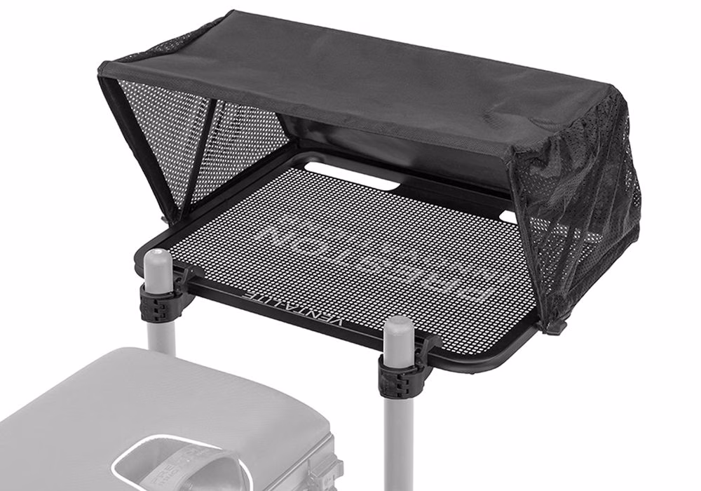Preston Innovations Venta-Lite Hoodie Side Tray. Preston Innovations Venta-Lite Hoodie Side Tray, tavolino con tendina per match e feeder per riporre esche e pasture di lato al panchetto da pesca. Il Preston Innovations Venta-lite Hoodie Side Tray è un piatto laterale con tendina ideale quando si pesca in condizioni meteo variabili. Può essere utilizzato con la tendina abbassata o sollevata a seconda delle esigenze del pescatore, semplicemente utilizzando le guide laterali di blocco. La tendina garantisce la conservazione delle esche nelle migliori condizioni indifferentemente dalle condizioni atmosferiche. può essere montato su gambe tonde da 36 mm e con gli appositi adattatori forniti, anche su quelle da 30 e 25 o quadrate da 23 mm (con angoli stondati Preston Offbox).