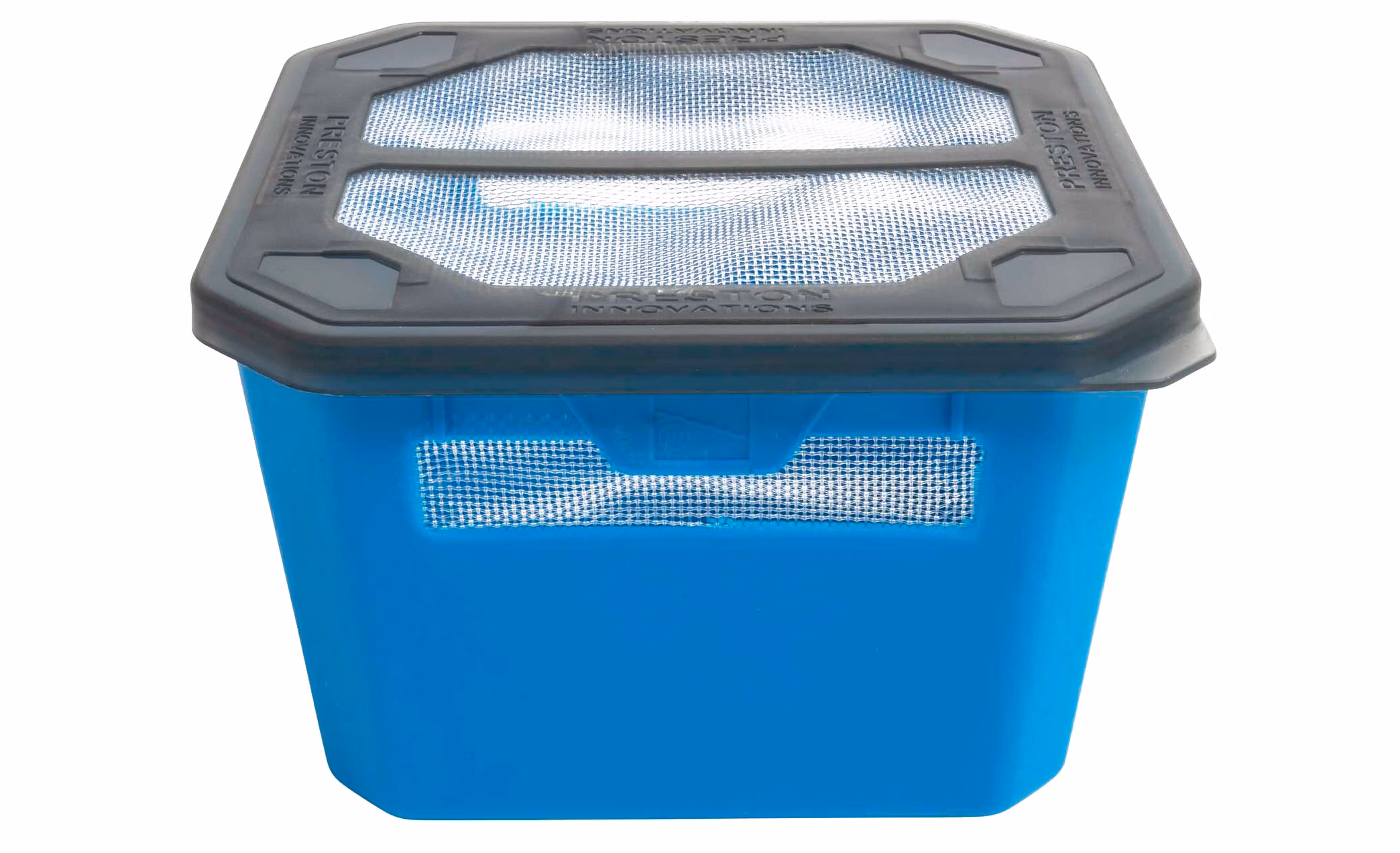 Preston Innovations Venta Window Tub. Progettato per mantenere fresche esche vive come vermi, pinkies e bigattini, consentendo all'aria di circolare nell'esca. Realizzato in plastica robusta e resistente e caratterizzato da un design impilabile, questo contenitore è facile da riporre ed estremamente durevole. Realizzata in materiale plastico blu dotato di coperchio con micro rete.