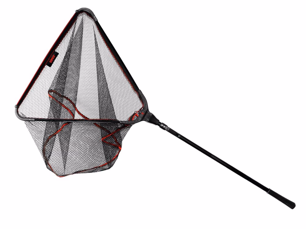 Épuisette pliante Rapala. Très facile à transporter et à emporter avec vous. Il dispose d'un clip ceinture intégré et peut être ouvert d'une seule main. Le filet caoutchouté est sans danger pour les poissons.