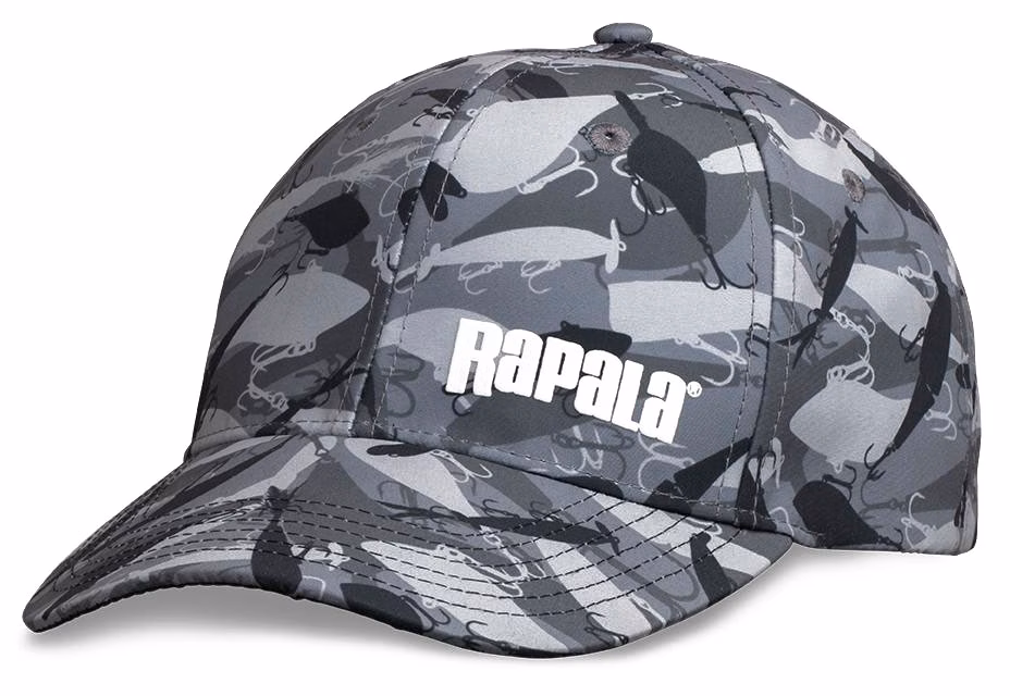 Casquette de pêche Rapala au design exclusif « lure camo » avec visière de style baseball composée des silhouettes des leurres de la société finlandaise. Taille unique, composition : 100% polyester