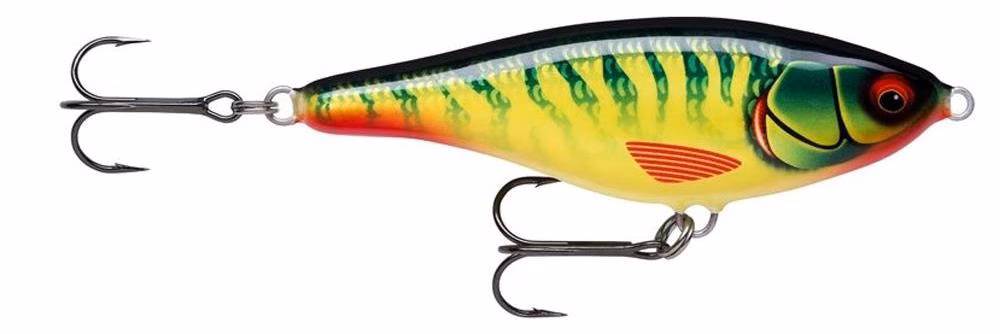 Jerkbait pour la pêche au brochet Rapala Twitchin' Rap. Twitchin Rap a la « forme classique Rapala » parfaite qui est facile à pêcher et à attraper des poissons. L'appât est en balsa, ce qui facilite la pêche et l'appât répond immédiatement à tous vos mouvements de suivi. Le bois de balsa est cueilli à la main et testé pour garantir la bonne densité et la bonne vitesse de chute sur chaque spécimen. Le Twitchin Rap peut être pêché juste sous la surface, ce qui signifie que les poissons prédateurs peuvent facilement le voir depuis leurs cachettes. Parfaitement équilibré et descendant lentement, il bascule vers le bas à l'arrêt de la rotation. Quelque chose qui déclenche les réflexes de morsure des poissons prédateurs ! Le Rapala Twitchin Rap peut être pêché de plusieurs manières. Avec la pointe de la canne contre la surface et de petites contractions, l'appât dépasse très largement d'un côté à l'autre. Il peut également être lancé dans des courbes en S fines et larges ou avec un arrêt de rotation pour imiter un poisson-appât blessé.