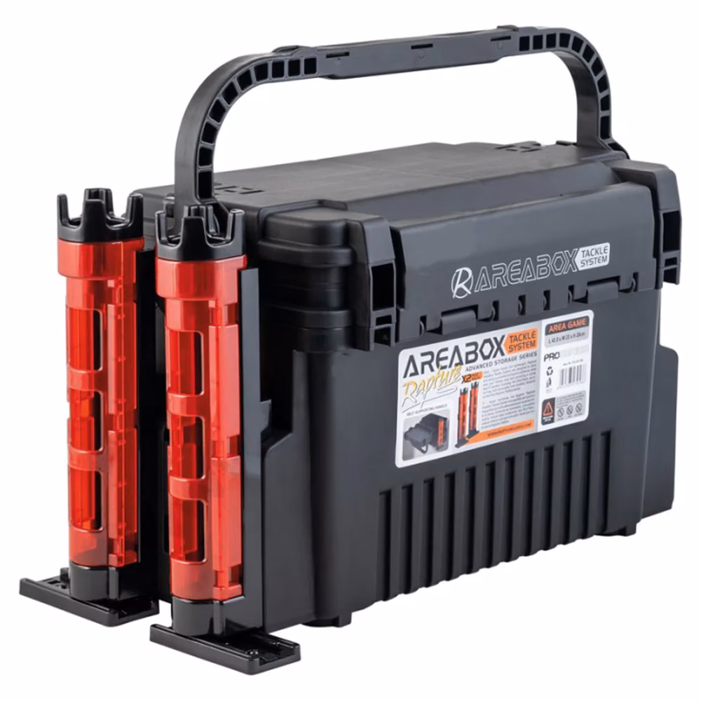 Trout Area Rapture Area Box Tackle System. Coffre pour le secteur de la truite et la pêche aux leurres en général. En retirant le capot supérieur, l'intérieur est capable d'accueillir d'autres boîtes, classeurs, pinces, etc. fourni avec 1 bandoulière réglable avec bandoulière en caoutchouc et 2 porte-cannes latéraux Tackle System Rod Rack à dégagement rapide et réglables, très utiles lors du transport des cannes et pendant l'action de pêche.