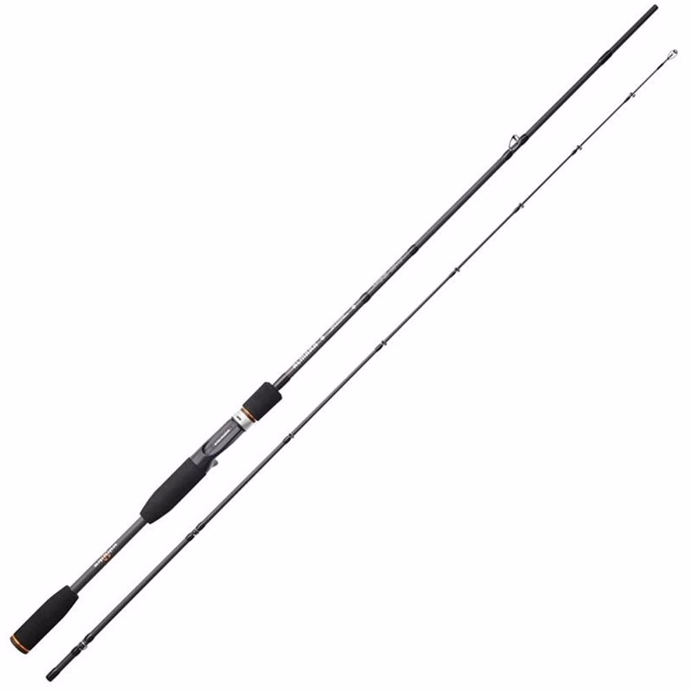 Canne à pêche au lancer Sakura Almara. Canne à pêche au lancer IM24T en deux parties en graphite, avec des composants d'une fiabilité totale (anneaux SIC résistants à la tresse, nylon, fluorocarbone), porte-moulinet ergonomique, et représentant un produit qui, en termes de niveau de finition et de performances, atteint un rapport qualité/prix surprenant. Dotées de détails et de logos modernes et attrayants, elles présentent d'excellentes caractéristiques de sensibilité, de puissance et d'équilibre. Bonne canne à lancer pour pêcher le black-bass, la perche, le sandre.