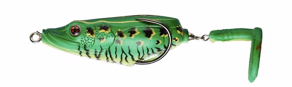 Sakura Bubble Frog est une grenouille anti-accrocs pour la pêche au bar et à la pêche au brochet avec un corps creux très doux et une queue de pagaie rotative en PVC flexible qui génère des turbulences en surface. C'est une grenouille indispensable pour pêcher dans les zones à végétation dense immergée, en effet elle passe très facilement entre les nénuphars, les roselières et les branches, émettant en permanence une quantité notable de vibrations grâce à la queue de pagaie en PVC souple reliée au corps par un robuste émerillon pour ne pas s'abîmer même sous les attaques les plus violentes du black bass ou du brochet. Sur le ventre, il est équipé d'une petite valve qui expulse l'air lorsqu'on le presse et rend la frappe sur le palais de la grande gueule beaucoup plus efficace. Armé d'un double crochet très robuste à très forte pénétration.