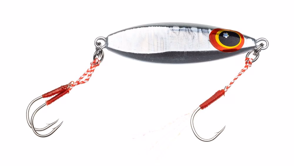Ce mini-slow jig est plus polyvalent que nos modèles précédents grâce à sa forme compacte et portable. Utilisé principalement en slow jigging, il est très efficace en casting jig pour attaquer l'appât. Sans surprise, la catapulte est positionnée à longue distance et offre un avantage certain. Revue d'un film holographique protégé par un vernis solide, il est vendu armé d'un simple hameçon assist en tête agrémenté de fibres de Krystal Flash et d'un double assist en queue.D'une solidité à toute épreuve et d'une très haute densité spécifique, le Mora Mora a une silhouette très particulière où le centre de gravité se situe sur la crête ventrale. Grâce à une armature « full wire » en acier inoxydable, leur conception permet d'obtenir une ligne très attractive et une descente rapide et en nœud papillon.