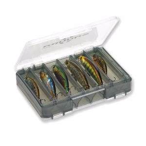 Sakura SK-D86 box, scatola da spinning e lure fishing made in Japan per hard bait, con doppia faccia. Queste scatole dispongono di un sistema per far defluire l'acqua e l'umidità su ogni scomparto. Questo sistema è studiato per limitere l'ossidazione prematura delle ancorette e degli ami. Ideale per riporre minnow da light game. 6 scomparti per lato.