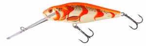 Salmo Perch Super Deep Runner, Crankbait imitation d'une perche, un poisson commun dans toutes les eaux européennes. Ce leurre Salmo se décline en de nombreuses variantes, toutes capables de couvrir les différentes situations de pêche auxquelles les pêcheurs seront confrontés et convient particulièrement à la traîne du brochet et du silure au lancer. Le Salmo Perch SDR atteint des profondeurs de 5 mètres s'il est utilisé depuis le rivage, mais peut atteindre jusqu'à 12 mètres s'il est remorqué.