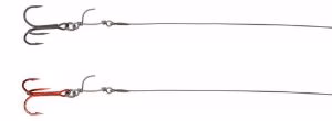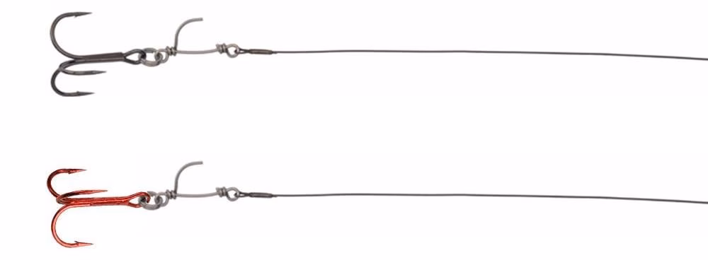 Trace de fil Carbon49, montée avec le clip modificateur Line et les triples Y ultra-pointus Savage Gear – parfait pour la truite 4D Line Thru.