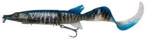 Savage Gear SG 3D Hybrid Pike, swimbait avec corps rigide et queue de larve. 3D Hybrid Pike est une imitation de brochet super réaliste avec une queue bouclée douce qui produit des vibrations même lorsqu'elle est récupérée lentement. Lorsque la queue est vissée, lors de la récupération la "force ascendante" poussera la tête du leurre vers le bas, tandis que lorsque la queue est vissée, la force aura tendance à maintenir le leurre en surface avec la tête haute - donc le Le swimbait remonte à la surface et glisse juste sous la surface créant un effet de sillage. Le système de déclenchement triple rendra le combat avec le prédateur plus sûr grâce à l'émerillon très résistant incorporé sur l'anneau. Une queue de remplacement est incluse dans le colis.