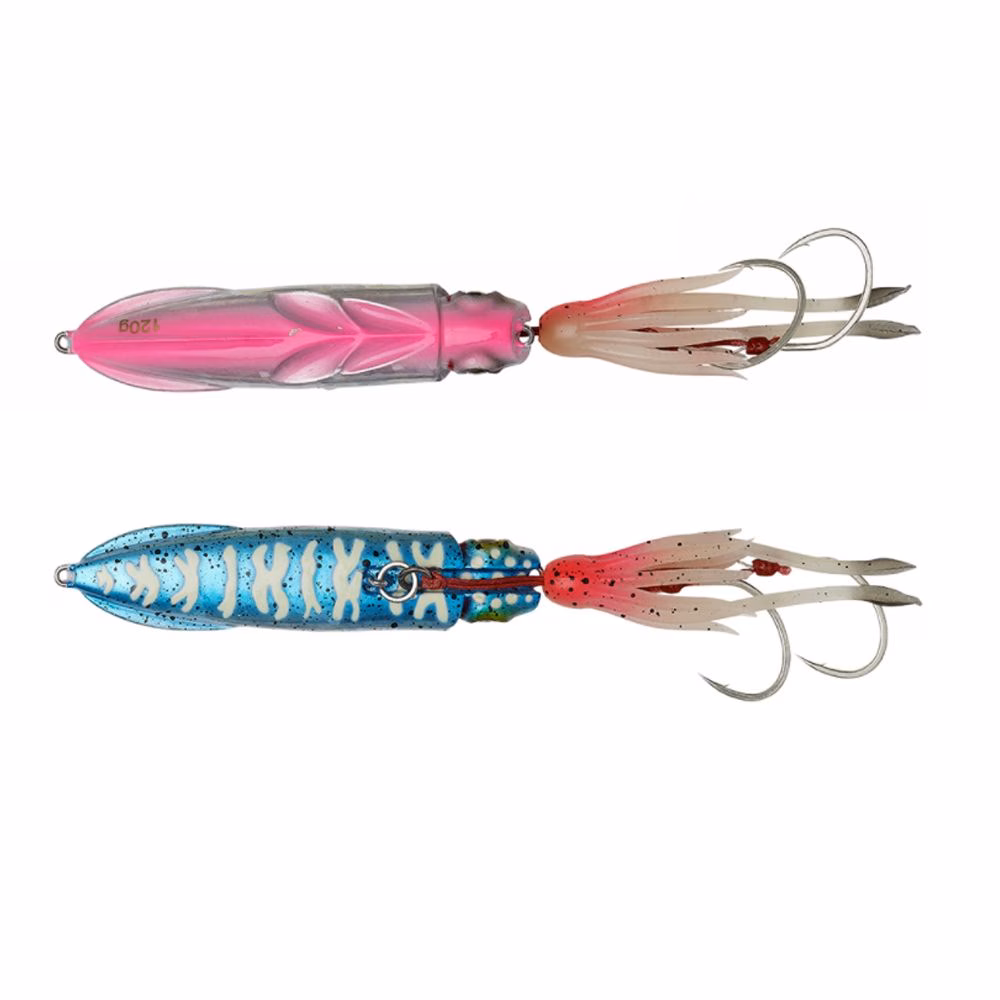SWIMSQUID INCHIKU Vous ne croirez pas qu'il ne s'agit pas d'un vrai calmar, et plus important encore, les gros vivaneaux, mérous et autres prédateurs pélagiques non plus. Le leurre Swimsquid Inchiku a une action de nage de calmar incroyablement réaliste et est conçu pour être utilisé avec un équipement de jigging lent sur du matériel léger. Avec des secousses lentes et douces, les tentacules parfumés se déplaceront de manière très séduisante et, combinés à la jupe lumineuse réaliste, contribueront à attirer les prédateurs de loin. Ce leurre est fantastique à l'automne et comporte également un hochet en acier intégré et des yeux de seiche 3D réalistes. Il y a également deux anneaux différents pour que vous puissiez pêcher le leurre avec des actions différentes.