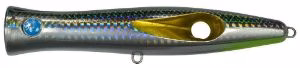 Le TOTO 113 est essentiellement un popper "nageur" qui entre et sort de l'eau automatiquement lors de l'action de récupération sans nécessiter d'action particulière avec la canne de la part du pêcheur. Récupéré de manière linéaire, ou alterné de secousses courtes ou longues, il crée un tube sous-marin de bulles vraiment important, et un "frisson" caractéristique de l'appât qui entre indépendamment en vibration à intervalles réguliers. Également parfait s'il est utilisé comme popper classique et en cela plus maniable que le modèle plus grand avec les cannes MH normales d'usage courant. Il a une armure traversante.