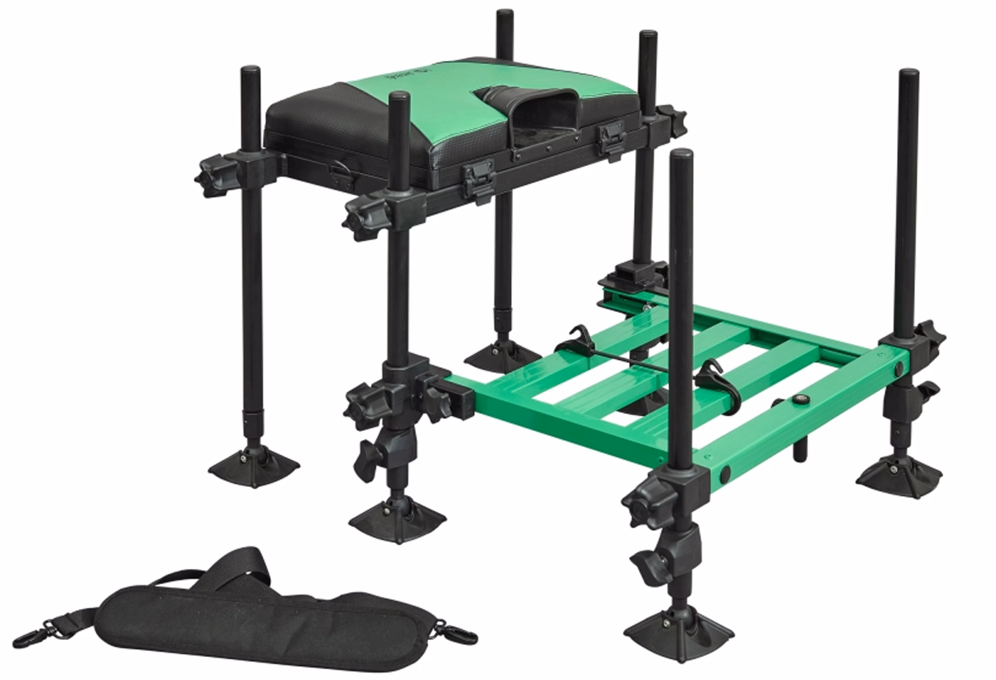 Un siège léger et peu encombrant, idéal pour ceux qui souhaitent pratiquer la pêche rapide. Livré avec 4 pieds standards (diamètre 25), un repose-pieds et une sangle amovible et réglable avec 'confort de transport.