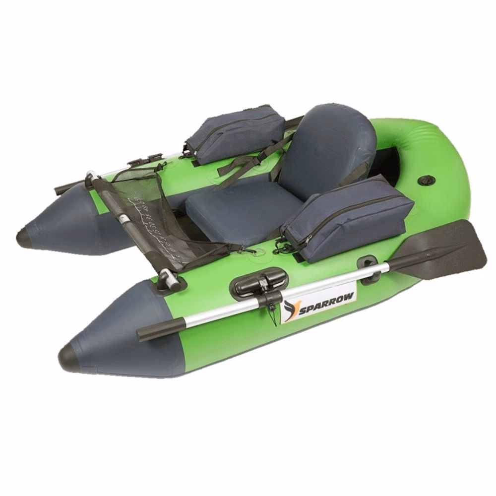 Le Sparrow MURANO float tube est fabriqué en tissu PVC épais thermo-soudé, ce qui le rend extrêmement résistant. Ses dimensions garantissent une stabilité optimale. Les brides pointues sont renforcées et assurent le maintien des ailerons. Le siège gonflable assure une position de pêche confortable. Les deux grandes poches latérales sont amovibles. Il est équipé d'un stabilisateur, d'un tapis de débarquement, de bretelles amovibles et d'une paire de rames, très utiles pour rentrer à la maison après une longue journée de palmes par vent fort ! Dimensions Longueur : 170 cm, Largeur : 110 cm. Poids : 12 kg. Charge maximale : 180 kg.