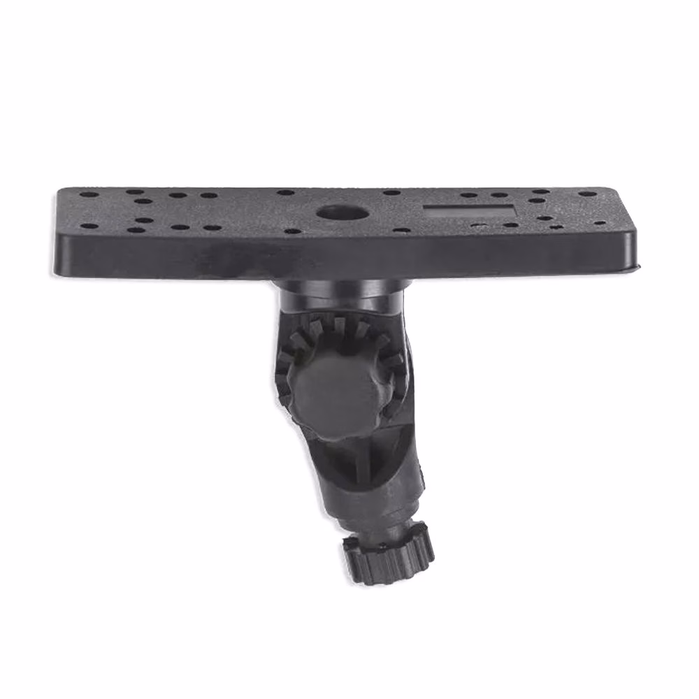 Ce support échosondeur et porte sonde est disponible en deux versions : la première est destinée aux modèles de sondeurs à écran de 5 à 8 pouces, la deuxième est rectangulaire et accepte les sondeurs à écrans de 9 pouces et plus.