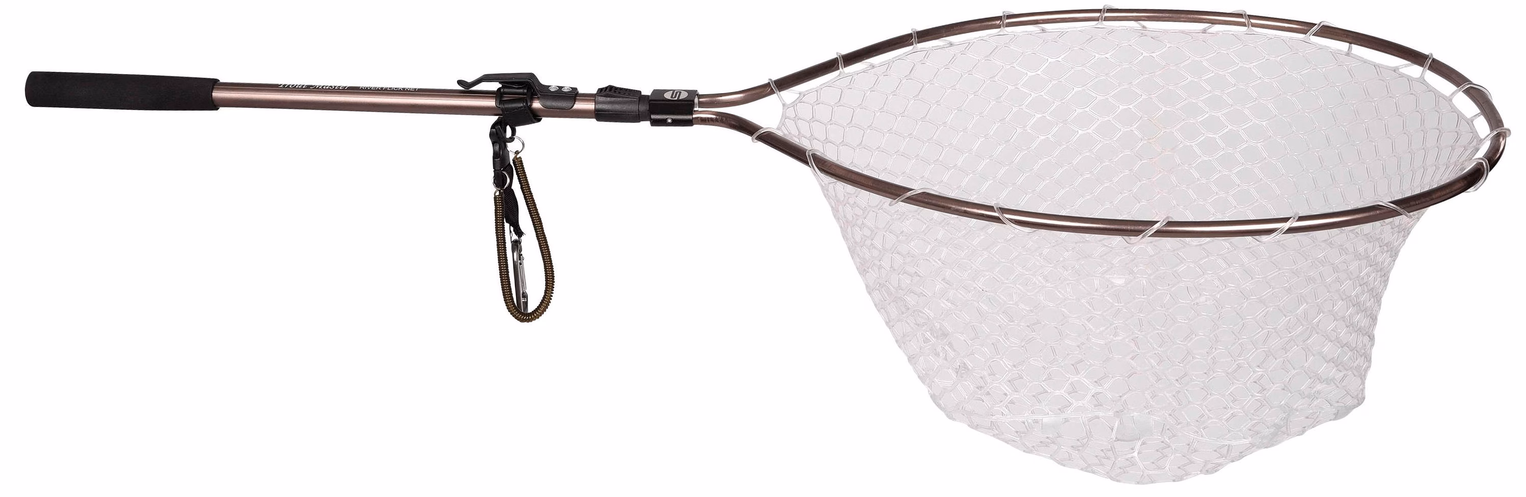 Spro Trout Master River Rubber Flick Net. L'épuisette Spro River Rubber est spécialement conçue pour la pêche à la truite dans les rivières et les ruisseaux. L'épuisette est dotée d'un mécanisme d'ouverture robuste et facile à utiliser d'une seule main. Il est équipé d'un mousqueton en spirale qui permet de l'attacher à la ceinture ou au sac. Le mousqueton en spirale peut être fixé lorsqu'il n'est pas utilisé. Le filet en caoutchouc transparent utilisé est résistant aux crochets, sèche rapidement et est très facile à nettoyer.