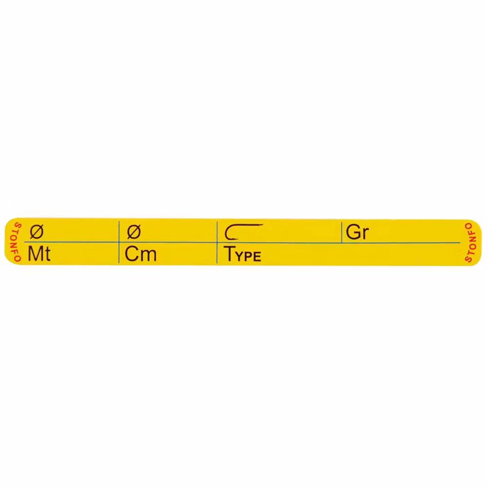 Etiquettes adhésives Stonfo pour rappeler la date de préparation et les matériaux à partir desquels une ligne de pêche est fabriquée. L'étiquette semi-plastique vous permet d'écrire les différents détails de chaque ligne et de la fixer sur un dévidoir ou un porte-ligne rond en mousse. Caractéristiques de l'étiquette : résistante à l'eau et à l'usure, adhésif permanent, permet également d'écrire avec un stylo normal.
