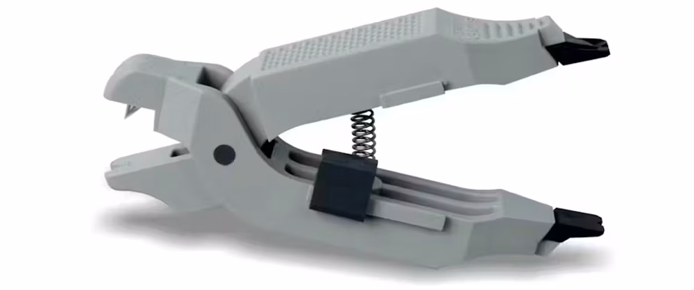 Stonfo Lead Stripper. Il est équipé de deux lames qui permettent de détacher la grenaille de plomb et de la faire glisser sur la ligne. Il est également excellent pour serrer les alambics ou les plombs sur la ligne.