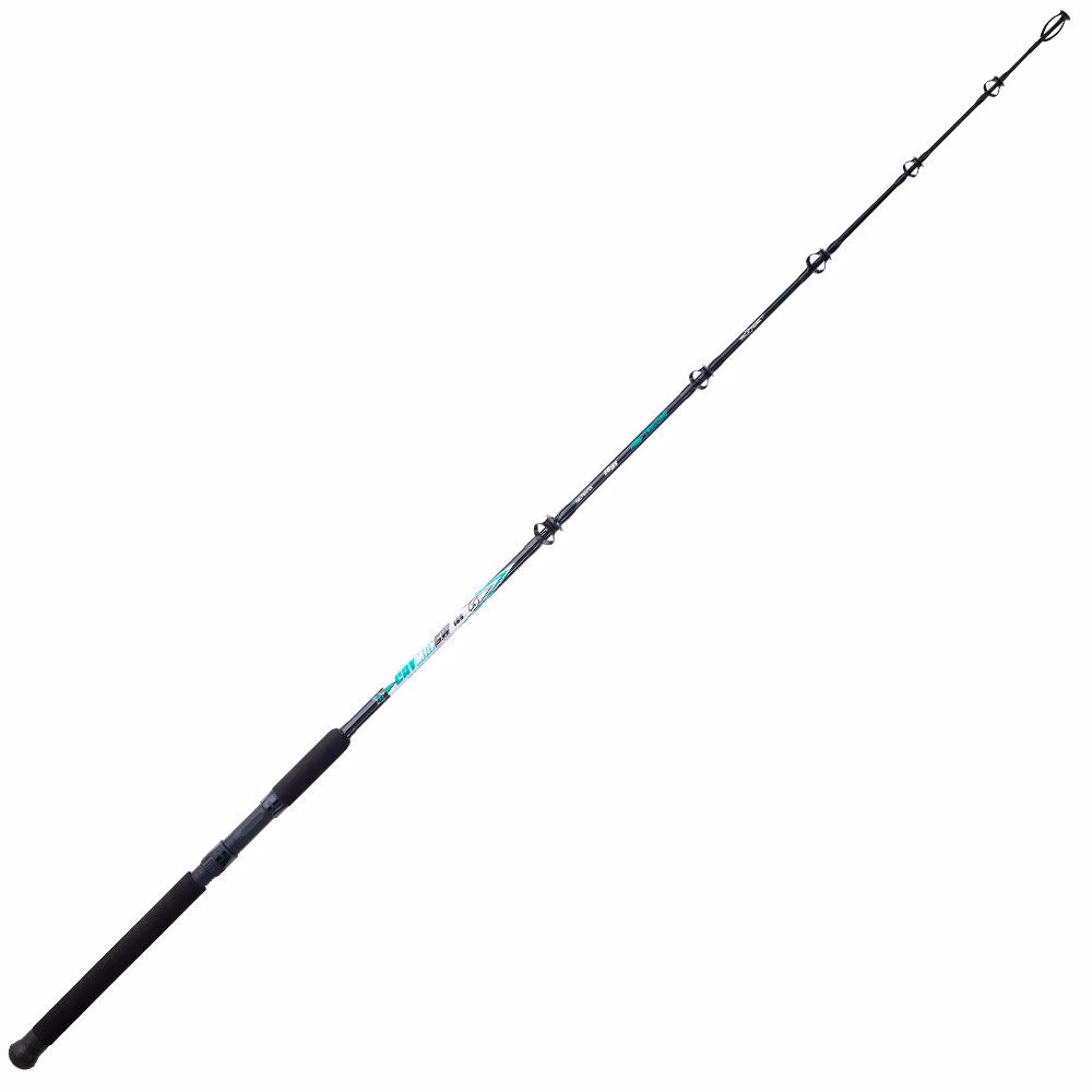 Sunset Cayman SW. es cannes CAYMAN SW sont spécialement conçues pour la traîne légère, offrant des performances optimales pour les pêcheurs en quête de maquereaux, de bars ou de bonites.Fabriquées en fibre de verre plein ‘ FGC Concept ‘, ces cannes monobrin allient robustesse et sensibilité, idéales pour les sorties en mer. Les cannes CAYMAN SW se distinguent par leur construction en fibre de verre plein. Cela garantit une solidité exceptionnelle pour résister aux rigueurs de la pêche en traîne. Le pommeau antichoc protège la canne des impacts, tandis que la poignée en EVA offre une prise en main confortable et ferme, essentielle pour les combats les plus rudes. Ces cannes sont particulièrement adaptées pour utiliser un train de plumes lors de la pêche au maquereau ou un leurre à bavette pour cibler le bar et la bonite. Leur conception monobrin offre une transmission optimale des sensations, permettant de détecter immédiatement les touches. Nous avons équipé les cannes CAYMAN SW d’un porte-moulinet tubulaire, assurant une fixation sécurisée de votre moulinet. Les anneaux renforcés SiC ligaturés et noirs, traités anti-corrosion, sont conçus pour résister aux conditions marines les plus exigeantes, garantissant une longue durée de vie et des performances constantes.