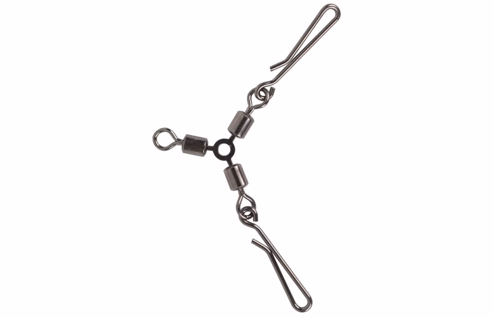 Emerillon Agrafe Rolling 3 Way W/Snaps. Emerillon avec double mousqueton spécialement conçu pour la pêche à la seiche et à l'encornet à l'aide de squid jigs. Conçu pour attacher le plomb à la turlutte. Ils peuvent également être utilisés pour les plombs de conservation et autres systèmes de pêche qui nécessitent une libération rapide du plomb.