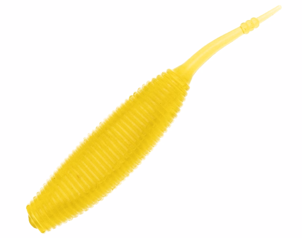 Ver souple pour le montage ned et la finesse, produit en deux tailles de 8 et 9 cm, avec un corps rond aplati près des côtés et une petite queue fourchue. Appât compact adapté aux présentations verticales et inclinées sur les fonds marins, sur têtes plombées ned-rig ou hameçons Texas associés à des poids très légers. Corps très doux et compressible, extrêmement élastique, réalisé avec un composé enrichi en parfum et en quantité réduite de sel. La petite queue effilée et vibrante se balance littéralement « sur place » au moindre appel. Idéal pour le black bass.