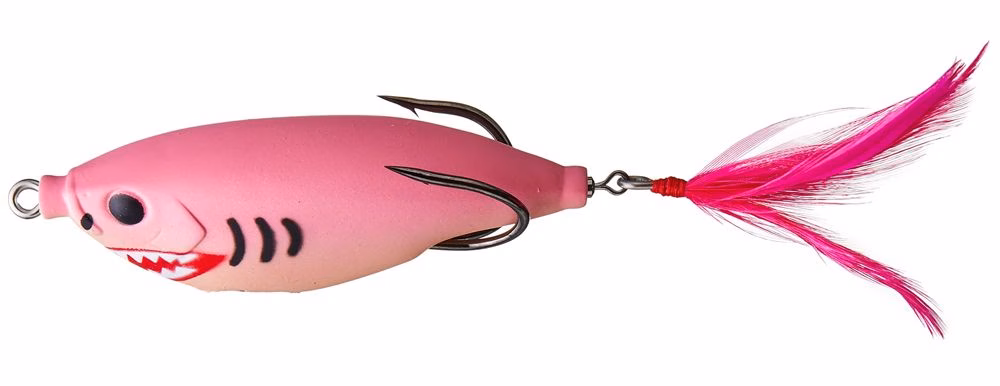 Le Teckel Sharker a été conçu par H.Maeda pour incorporer l'action d'un leurre "glide bait" dans une grenouille "topwater" sans mauvaises herbes. Le Teckel Sharker Frog distribué par Lucky Craft est la dernière innovation issue de l'esprit de Teckel Lures, conçu pour déclencher des touches explosives tout en se déplaçant avec une action latérale large. Avec son profil fin et ses flancs plats qui coupent l'eau proprement avec un mouvement large, le Sharker Frog offre la polyvalence de produire une action plus serrée de type wakebait sous la surface ou de s'échapper rapidement pour imiter la fuite des gastéropodes ou des poissons-appâts. Les Sharker Frogs de Teckel sont dotés de queues en plumes vives attachées par un émerillon à bille de première qualité pour fournir un niveau secondaire d'attraction et aider à la quille de l'appât lors de la récupération.