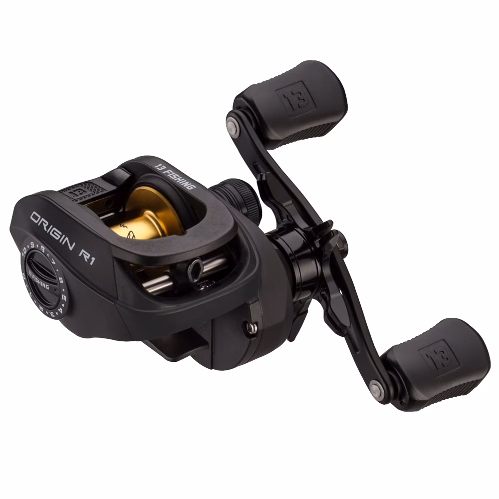 13 Fishing Origin R1. L' Origin R1 è un mulinello da casting 13 Fishing con manovella a sinistra ad un prezzo ragionevole con buone prestazioni. Frizione a 18 libbre, Fastback Frame Design, sistema MCS - Magnet Control System che garantisce ottimi lanci senza creare grovigli del filo e 5 cuscinetti a sfera totali. Il 13 Fishing Origin R1 è consigliato per bass fishing (con tecniche da leggere a medio/pesanti) e per altri pesci predatori (sandra, aspio, persico reale) abbinato a canne adeguate alle sue caratteristiche.