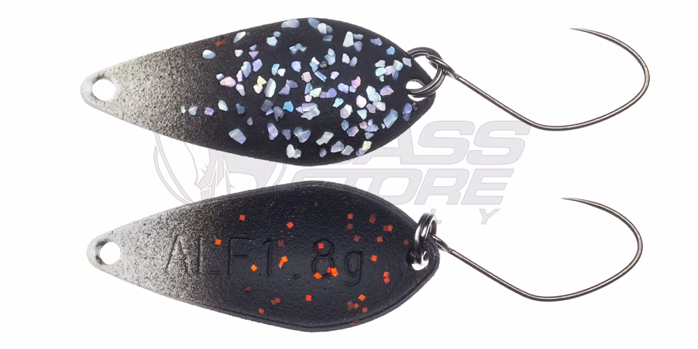 Alfred ALF Limited Nighter Special. L’Alf è uno spoon dalla forma romboidale con bordi arrotondati e viene prodotto in varie grammature. Questa serie LIMITED , ha il corpo in duralumin, con glitter di polvere di Abalone. Eccezionale effetto GLOW , rosso o verde , sulla punta con una notevole illuminazione. Prodotto di eccellente qualità esclusivamente Made in Japan, con colorazioni accattivanti e verniciatura molto resistente. Alfred si distingue per le sue produzioni originali, abbinate ad una forma altamente catturante, che varia in base alla grammatura. Questa è la forza dell’ALF: ideale per ogni momento di pesca, cambiando la grammatura non si perderà il wobbling che lo contraddistingue, andremo solo a modificarne l’affondamento.