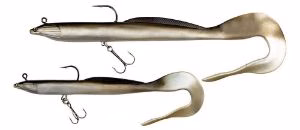 La Behr Rigged Eel Imitation è la replica ultra realistica con coda a grub di una anguilla. Questa soft swimbait atipica imitazione di anguilla è realizzata in gomma estra resistente con dettagli tridimensionali e viene prodotta in due misure. Può essere utilizzata sia in acqua dolce per sandra, siluro, luccio reale,  che per saltwater cercando grosse spigole, barracuda, serra, leccie.  Sinking.