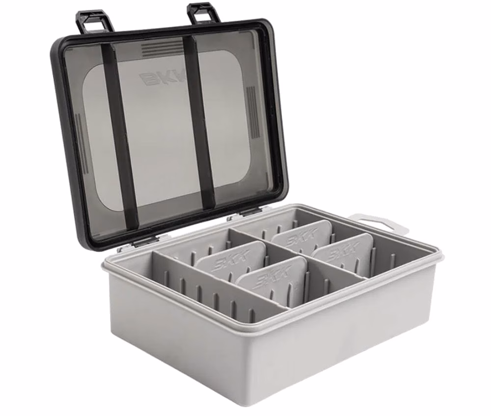 La compagna ideale per mantenere la tua attrezzatura da pesca organizzata e pronta all'uso. Il sistema BKK OCD garantisce che tutto rimanga in ordine e facilmente accessibile ogni volta che apri il vassoio per attrezzatura. Realizzato in polipropilene resistente e dotato di una guarnizione morbida e di robuste chiusure, mantiene la tua attrezzatura al sicuro, impermeabile e protetta dall'umidità. Il sistema BKK OCD è il compagno ideale per riporre le scatole per ami e accessori Armor-Point. Supporta fino a 80 scatole piccole, 44 scatole medie o qualsiasi combinazione di dimensioni intermedie ed è perfetto per riporre ami e accessori più piccoli.