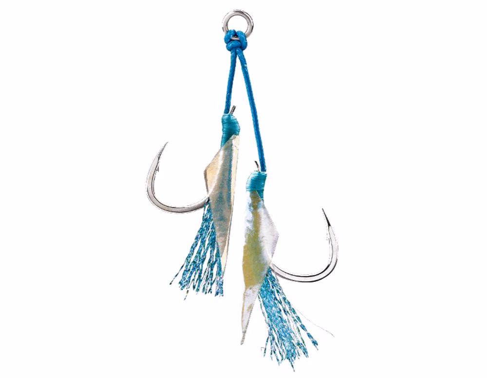 The BKK Sea Ranger+ is developed to tackle big fish using small bait. It comes pre-tied with BKK high quality solid core assist cord, which is very robust yet retains its softness. Shimmering and glowing fibers increase the attractiveness of the jig, triggering more strikes. It features a heavy gauge providing excellent strength to the hook and BKK’s Hand Ground hook point technology lightening the weight of the hook, providing an outstanding penetration performance. Additionally, the U-spade Slip Lock feature keeps the assist line securely in place. Last but not least, the bright tin coating ensures sharp hooks in saltwater environment, preventing saltwater corrosion.