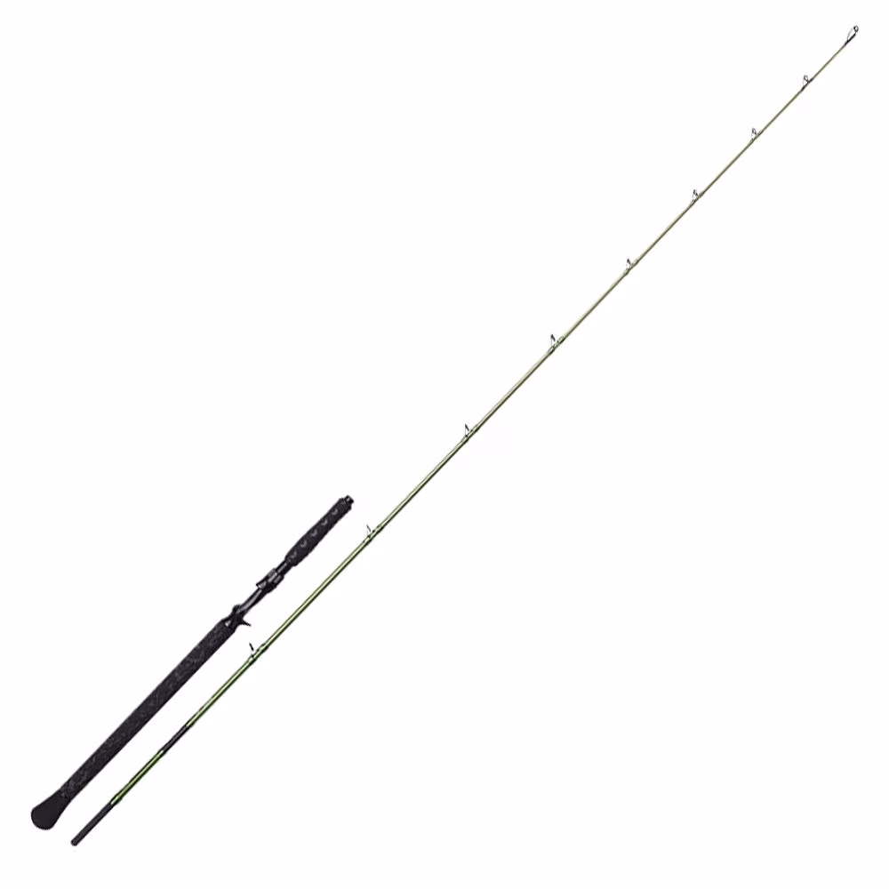 Madcat Green Series casting, canna da casting da siluro con innesto offset (1+1). Arriva per la serie di canne MADCAT Green, una canna da baitcasting per siluro con un azione perfetta per il lancio di minnow, spoon ed esche in gomma. La Madcat Green Series Baitcast è rapida e potente, e viene consigliata per la pesca di siluri di grossa taglia. Questa canna da casting per catfishing monta un portamulinello originale Fuji, impugnatura da combattimento in EVA antiscivolo x-wrap.