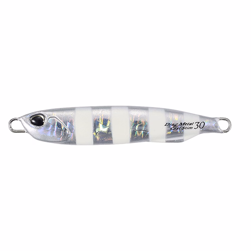 Drag Metal Cast Shot. In addition to the high castability, the controllability of the Drag Metal series have proven to the world its grand potential. Now a slim type is ready for release!! With its center balance design, we have reduced the drag against the jig allowing for an agile slow to high-pitch action with your rod work. Its swimming performance is stable, stress-free and lively. The powerful flashing from the jerk of the rod and its brief moment for the bite during its fall is brilliant. Anglers from around the globe will be able to enjoy this lure to target a vast array of species from the breakwater, rocks, beaches, estuaries and off-shore.