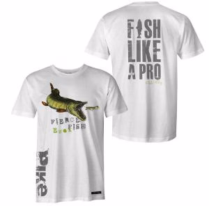 Fladen Hungry Pike T-Shirt, maglietta per appassionati di pesca al luccio, con logo che è una raffigurazione di un luccio in caccia!
