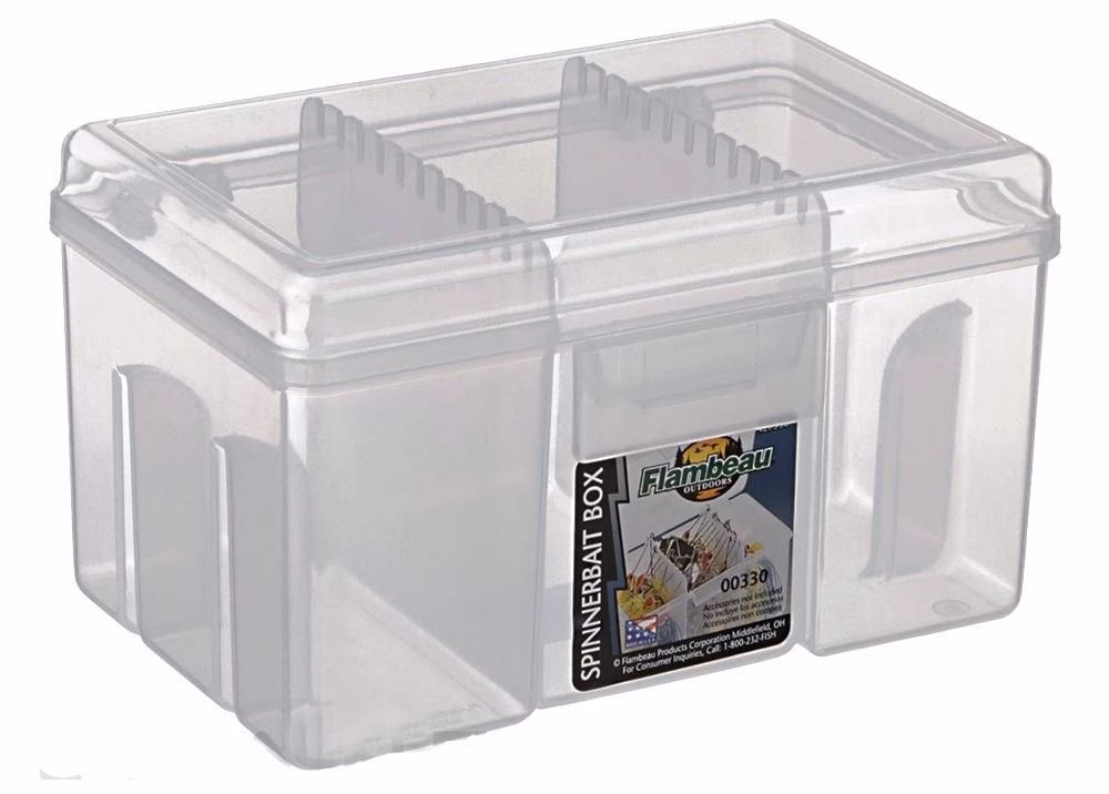 Flambeau Medium Spinnerbait Box Ike Iaconelli. E' una scatola per buzzbait e spinnerbait pratica e funzionale, dotata di divisori mobili per meglio organizzare la disposizione degli Spinner bait. A must-have for spinnerbait enthusiasts, the Flambeau 00330 Spinnerbait Utility Box is designed to keep up to 22 spinnerbaits neatly organized and protected. Built with two dividers and three compartments, the Flambeau 00330 Spinnerbait Utility Box reduces tangles and ensures that you can access your favorite spinnerbaits quickly and without complication. Constructed with a clear lid for easy identification, the Flambeau 00330 Spinnerbait Utility Box keeps your favorite spinnerbaits protected, organized, and ready to fish.